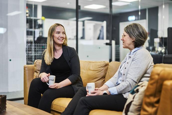 Marte enjoys a well-earned cup of coffee and a chat with our project manager Sarah IrvingWhat is it about your role that makes you tick?