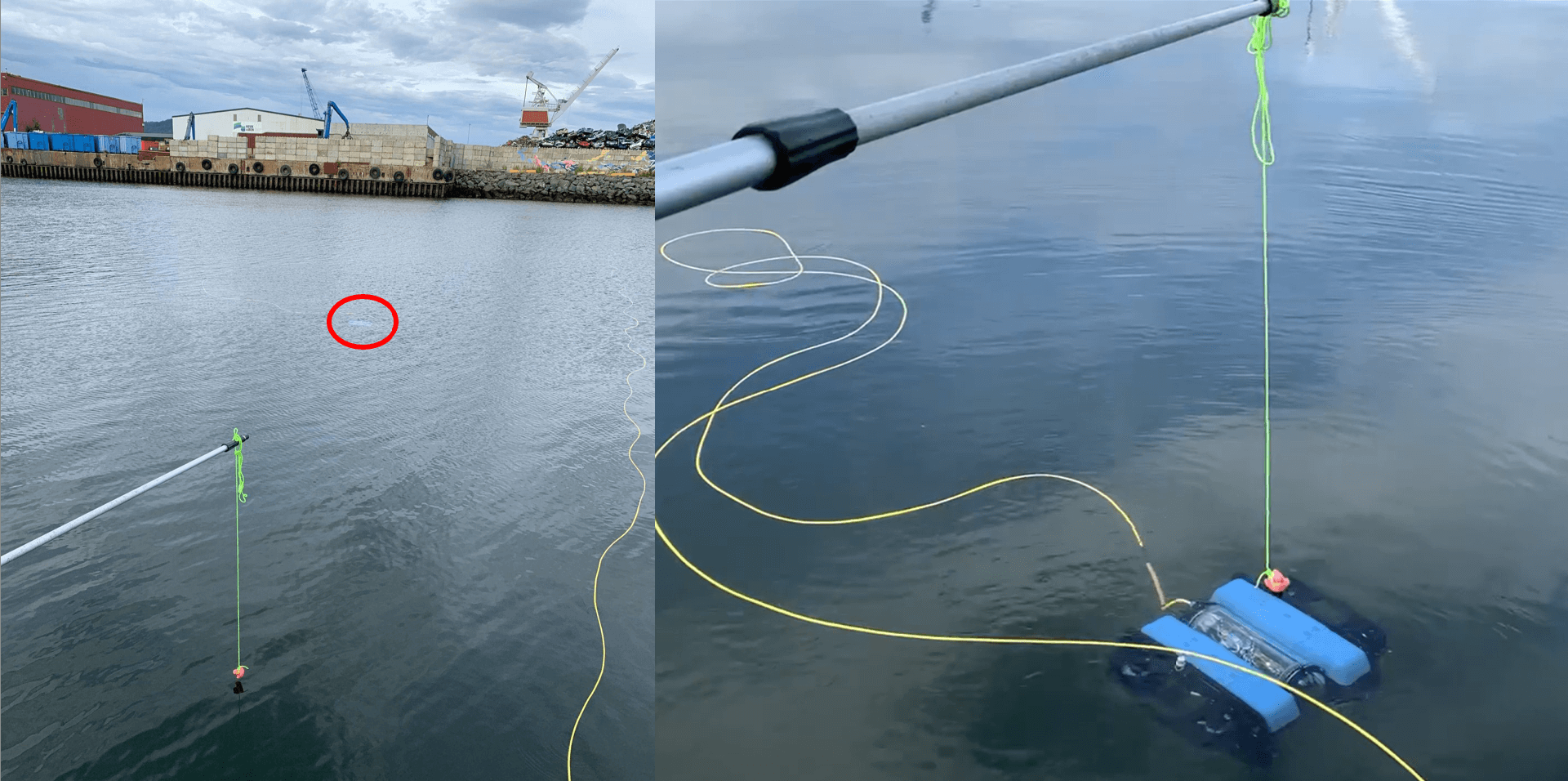 For their final demonstration, they showcased their work to Water Linked employees. They had their BlueROV autonomously navigate waypoints underwater, first using only the DVL and then combining DVL and UGPS data to eliminate drift. The challenge was to hit a suspended target at the end of the waypoint navigation mission.