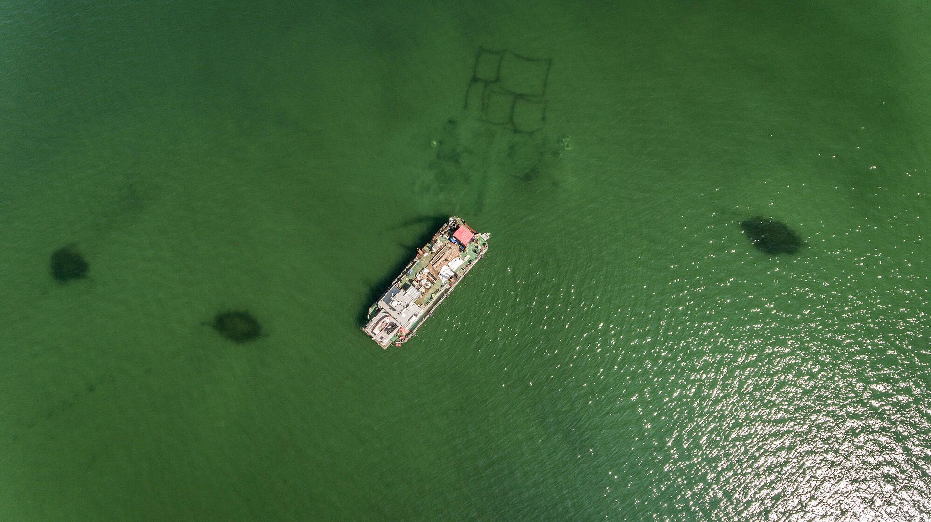 Using a special kind of rope, the shipwreck’s position was recreated visually as seen in the drone photo. What cannot be seen in the photo are all the positioning points which provide precise GPS instructions as to where each recovered object should be replaced at the end of the project.